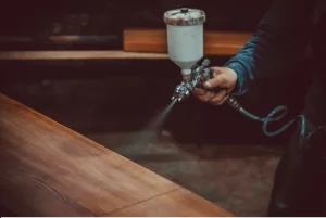 - في حالة الدهان بالرش يجب أن يكون الوجه الأول في اتجاه والوجه الثاني في اتجاه عمودي عليه وذلك بعد تمام جفاف الوجه الأول مع ضرورة أن تكون حركة الرش دائرية.